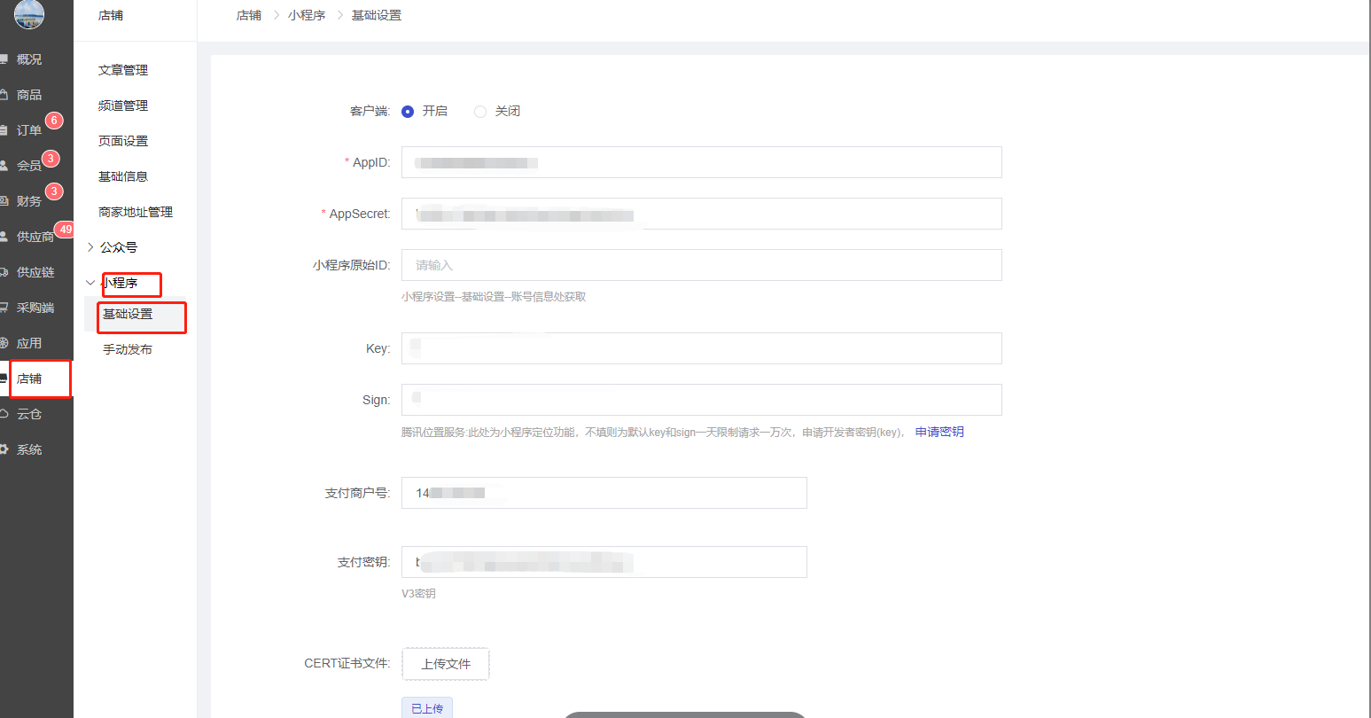 目录 搜索 展开 模王系统准备资料模王系统对接上线操作指南1、服务号的申请流程及认证2、申请小程序流程3、申请开放平台绑定小程序和公众号4、公众号对接后台流程5、小程序对接后台流程6、申请注册微信支付商户号7、支付对接操作指引8、小程序链接库9、腾讯位置服务注册10、申请移动应用11、小程序发布流程12、小程序备案13、小程序变更主体14、更新隐私协议15、关于小程序订单中心页设置的公告16、小程序接入发货管理系统17、小程序年审18.小程序对接企业微信客服19.微信提现(新接口:商家转账)20.短信资质需要准备的资料商城基础功能(系统框架)商城管理-概况商城管理-商品1,发布商品2,商品列表3,商品表单4,商品分类5,品牌管理6,配送模板7,评论管理8,优惠券管理9,商品标签10,退货地址设置11,满额优惠12、批量操作13、配送方式14、基础设置15、商品隐藏商城管理-会员1、全部会员2、会员等级3、会员分组4、资格申请5、会员设置6、推广中心设置7、会员邀请码使用记录8、关系链修改记录9、会员合并记录10、账号注销管理11、会员设置中心商城管理-订单1、订单管理列表2、订单处理流程3、订单状态4、订单修改价格5、订单退款退货(文档说明)6、多包裹发货7、批量发货订单操作步骤8、催发货订单商城管理-财务1、余额设置2、会员余额3、充值记录4、转让记录5、余额明细6、收入明细7、提现设置8、提现统计9、提现记录10、积分管理11、转账审核12、收益广告13、批量充值14、指定支付(余额充值)商城管理-系统1、商城入口2、商城设置①、商城设置②、订单设置③、物流查询④、短信阿里云短信配置腾讯云短信设置⑤、联系方式⑥、分类⑦、优惠券⑧、分享⑨、幻灯片⑩、广告位⑪、资产密码⑫、地图设置⑬、API应用⑭、邮箱配置3、交易设置4、支付方式①:微信支付②、其他支付(余额/他人代付/银行转账/货到付款)5、微信模板消息类目模板库-自定义消息通知 自定义消息模板小程序消息公众号模板消息变更公告6、语言设置7、权限管理8、多媒体管理商城管理-消息商城管理-应用商城管理-统计商城管理-装修DIY1、模板管理2、店铺页面2.1、装修增加跳转视频号2.2、增加抖音装修类型3、顶部导航4、底部导航5、DIY模板市场6、首屏广告7、图片智能设计8、基础设置应用-入口类【小程序】1、小程序基础设置运营规范2、小程序首次授权自动绑定手机号【公众号】1、自定义菜单-公众号底部导航2、自动回复3、素材管理4、粉丝管理【PC前端模板】1、基础设置2、广告管理-PC端模板1设置3、首页商品设置4、前端页面5、登录方式6、PC端模板2【子平台】【更换域名后公众号、小程序、商城等需要调整的内容】【一种万能的获取商城小程序路径的方法】【小程序客服】应用-行业类AI看舌付费内容付费文档【酒店】1、酒店基础设置2、酒店幻灯片3、酒店分类4、酒店入驻和管理5、酒店独立后台和商品6、酒店前端【门店-收银台】1、门店申请和使用步骤1.1 门店申请资料同步汇付进件2、门店管理①、门店-收银台 营销设置②、门店-收银台 分润设置3、门店分类4、门店申请5、门店审核6、门店商品7、门店商品订单8、收银台订单9、提成明细10、数据统计11、核销员12、基础设置收银台买单增加语音播报功能(会员推送)13、默认设置14、连锁店老板15、门店独立后台操作16、地图设置17、门店广告18、门店增加门店自提点功能19、门店、收银台分销 区域分红 招商分红计算示例20、门店股东21、门店余额1、门店余额插件2、门店-收银台插件-门店余额设置3、门店独立后台4、前端展示22、门店配送规则23、会员爱心值给到店主24.常见问题处理【供应商】1、供应商申请2、后台供应商插件3、供应商基础设置4、供应商前端页面显示5、供应商保单功能-可供保险行业提交保单信息使用6、供应商关联自提点【自提点】1、自提点操作说明2、自提点社区团购管理2.1 装修DIY插件增加社区团购组件3、自提点海报、自提点锁定期4、自提点消息通知5、自提点提成明细【商城自提】【上门安装】【视频点播】腾讯云上传视频流程1、【视频点播】基础设置2、幻灯片/导航管理3、添加讲师/在商品添加课程视频4、课程聚合页5、会员如何购买课件、打赏讲师6、会员如何升级等级免费观看课件7、讲师提现设置8、看课记录9、订单管理【安装服务】【活动报名】1.功能简介说明2.活动分类3.报名活动4.付费订单5.幻灯片6.基础设置7.前端活动报名操作流程【租赁】【同城配送】【店铺助手】【微社区】1、微社区基础设置2、微社区帖子分类管理3、微社区会员如何发帖4、微社区帖子管理5、微社区帖子打赏记录6、微社区帖子敏感词管理7、微社区增加心愿功能【代客下单】【支付宝配置】【分时预约】【拍卖商品】1、基础设置2、轮播图3、拍卖官列表4、拍品列表4、订单管理5、保证金记录6、拍卖记录7、拍卖官收入8、出价奖励记录9、代言费10、保证金黑名单11、禁拍名单12、拍卖前端【圈子社区】【AI智能测肤】【随叫随到服务】扫码买单【虚拟卡密】【厂家管理】【会务活动】1.会务活动管理2会务活动基础设置3.前端会务活动如何进行报名顾客档案应用-供应链类【聚合供应链】1、聚合供应链入驻流程2、聚合供应链常见问题3、聚合供应链售后解答4、